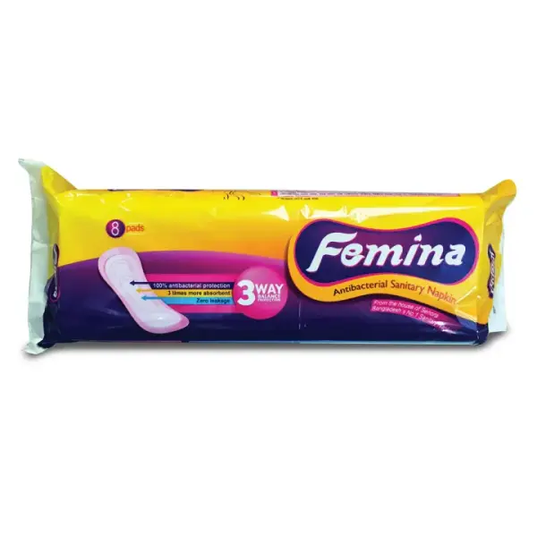 ফেমিনা এন্টিব্যাকটেরিয়াল স্যানিটারি ন্যাপকিন8 pad